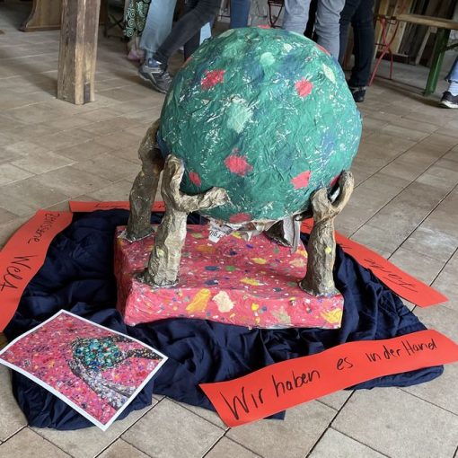 war der Leitgedanke für das Pfingstwochenende – und einen „Platz für Himmel“ haben die ca. 40 teilnehmenden Kinder und Erwachsenen am Landhaus am Heinberg geschaffen und erlebt. Mit dem Satz von Astrid Lindgren „Wie schön muss es im Himmel sein, wenn er von außen schon so schön aussieht“ startete die Gruppe am Freitagabend draußen auf dem Hof in das Wochenende. Es gab viel zu erzählen – und die am Himmel aufgehenden Sterne fügten sich zu Sternbildern. Der Morgenimpuls führte dann weiter ins Thema – „Sky und Heaven“ – und im gemeinsamen Singen ging der Himmel über allen auf. In unterschiedlichen Workshops konnten die Teilnehmenden „himmlische“ Erfahrungen machen: Beim „Himmelsplatz“, einem Workshop zum Anpacken und Freiraum schaffen, wurde ein wunderschöner Platz zum „in-den-Himmel-Schauen“ am Ende des Wandelort-Geländes gestaltet. „Mit dem Himmelreich ist es wie …“ – hier ging es um die Himmelreichsgleichnisse, die aktualisiert und kreativ mit Farben gestaltet werden konnten. „Aus heiterem Himmel“ wurden Postkarten gestaltet, geschrieben und direkt verschickt. „Feels like heaven…. Im Himmel ist Musik“ war Titel des Musikworkshops mit viel eigener Musik und mit dem Blick darauf, wie Künstlerinnen und Künstler das Motiv Himmel in ihrer Musik verarbeiten. „Himmelsstürmer“ gestalteten verschiedene Flugobjekte, die dann mit dem Pfingstgeist zum Himmel strebten. Eine Markise wurde angebracht – als Schutz, falls es der Himmel mal zu gut meint – und „Würde–unantastbar-Brettchen“ gebrannt als Zeichen dafür, dass Gottes Geist auch im Alltag unter den Menschen spürbar wird – denn „dann berühren sich Himmel und Erde …“! Gemeinsam wurde der Frühstückstisch gedeckt, zum Mittagessen gab es ein leckeres Mitbringbuffet und die im Ofen unter der Remise gebackene Pizza begeisterte alle. Beim Gebet zur Geistkraft in der Pfingstvesper und im berührenden gemeinsamen Pfingstgottesdienst am Pfingstsonntag konnten Junge und Alte alle persönlichen Anliegen einbringen. Dem Himmel ein wenig näher gekommen fuhren am Nachmittag alle vom Pfingstgeist gestärkt nach Hause – voller Vorfreude auf die gemeinsamen Pfingsttage im nächsten Jahr.