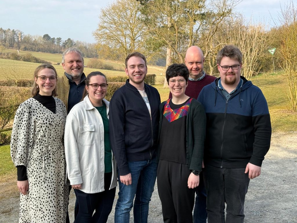Neuer Vorstand mit erweitertem Vorstand und Hausleitung (v.l.: Antonia Hucht, Christian Maier, Verena Brockhaus, Jakob Hucht, Elisa Fuhrmann, Thomas Schulte, David Fuhrmann)